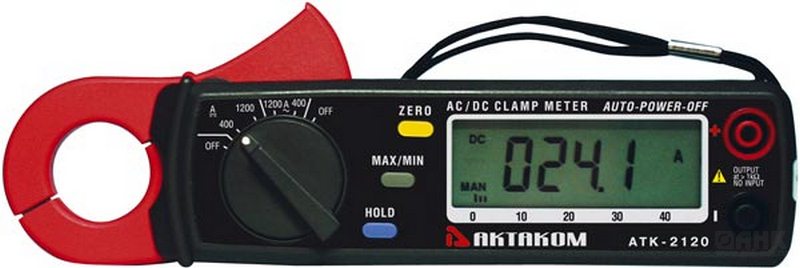 • Токовые клещи. Измерение пост. и перем. тока до 1200 А, диаметр обхвата 23 мм, аналоговый выход 1 мВ/1 А, возможность интеграции прибора с мультиметром/осциллографом, фиксация мин/макс показаний и удержание показаний,