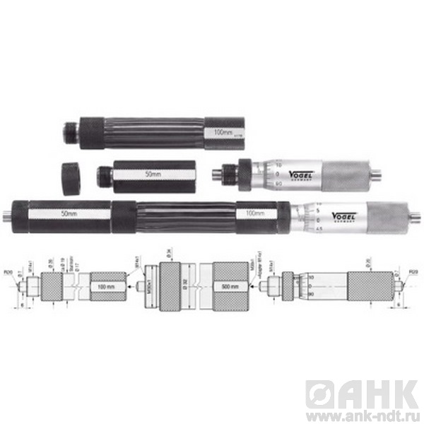 Описание нутромеров Vogel микрометрических с откручивающимися мерами