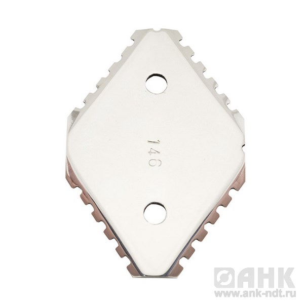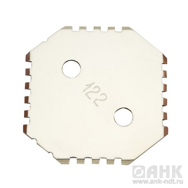 Толщиномер-гребенка представляет из себя шаблон, изготовленный из пластины нержавеющей стали. Выступы и опорные базы имеют клиновидную форму, обеспечивающую их легкий вход в порошок.