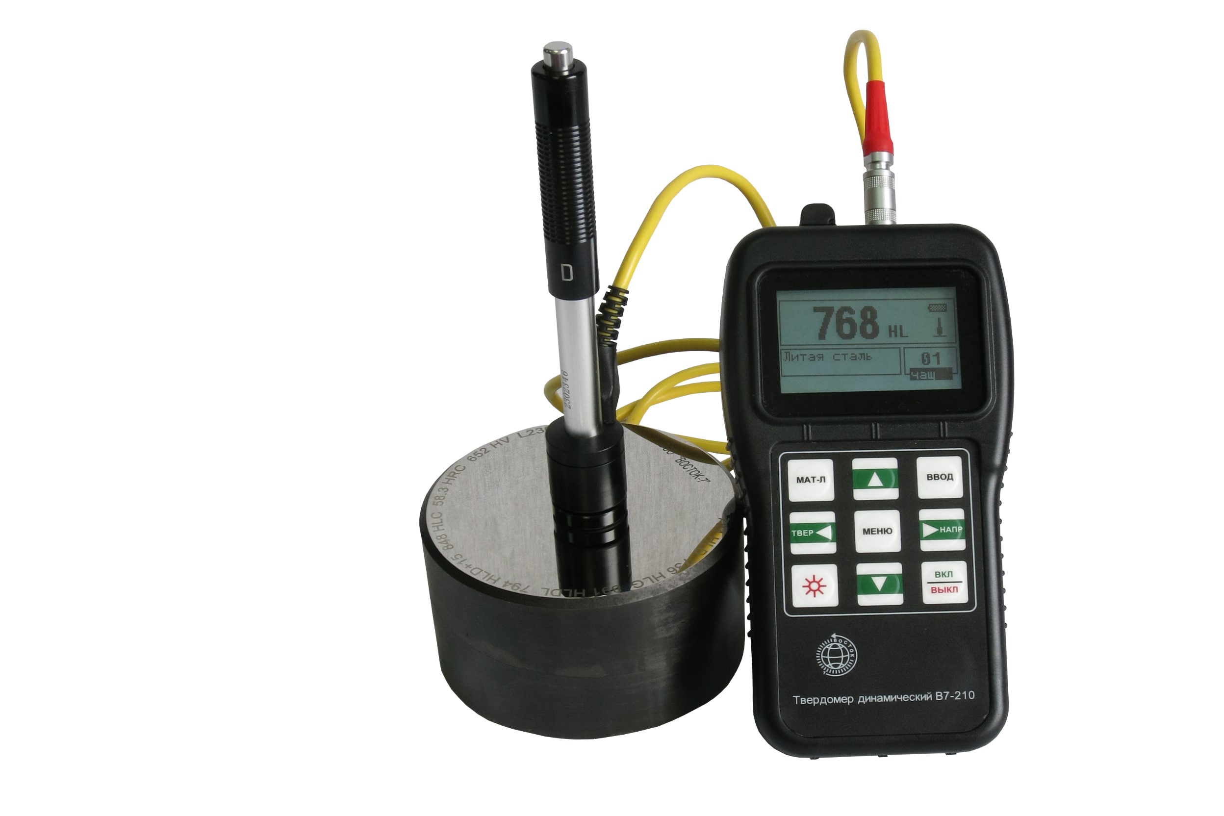 Твердомер измеряет твёрдость по методу Либа (HL), измеренное значение твёрдости отображается на дисплее по шкалам Роквелл, Бринелль, Виккерс и Шора D (HR, HB, HV и HSD соответственно).