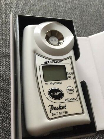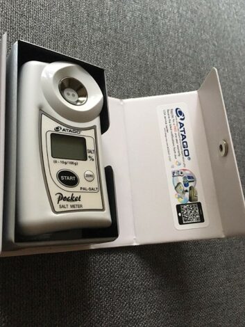 • Цифровой солемер PAL-SALT использует метод электропроводимости для измерения уровня солёности растворимых веществ в жидкости. PAL-SALT является первым солемером ATAGO со встроенной функцией оффсeта, позволяющей выводить результаты с автоматическим вычислением поправочного коэффициента. Данную функцию можно использовать, например, для автоматического ввода коэффициента разбавления или для ввода собственного поправочного коэффициента, который позволит получать результаты, согласующиеся с методом титрования. Для калибровки или проверки точности работы солемера Вы можете приобрести ГСО «NaCl» номиналом 2,5%. Поверка солемера PAL-SALT осуществляется в аккредитованной лаборатории АНК и занимает от 1 до 5 дней.